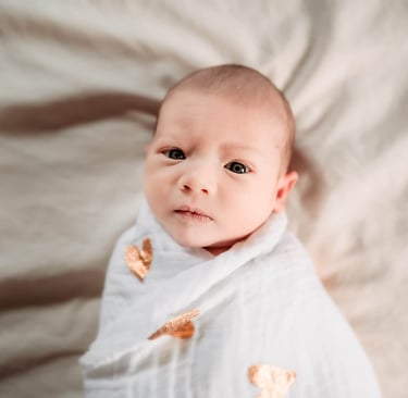 Your baby is in charge! I never force a pose or position. While I may gently guide your baby into natural, comfortable positions, if your little one shows any signs of discomfort or fussiness, we shift gears. The focus is on capturing real moments—snuggles with parents, quiet stretches in their crib, or peaceful feedings—whatever your baby needs in the moment.